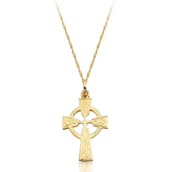 The Celtic cross Pendant is designed to be an elegant expression of faith. This solid 9K Gold Celtic Cross Pendant has been engraved with traditional Celtic knot work And yes, this Celtic cross Pendant is a piece of authentic Irish jewellery made in Ireland.  Therefore, we believe the Celtic cross necklace belongs in a special in your heart and jewelry collection and not simply because it accessorizes all outfits from casual to dressy.