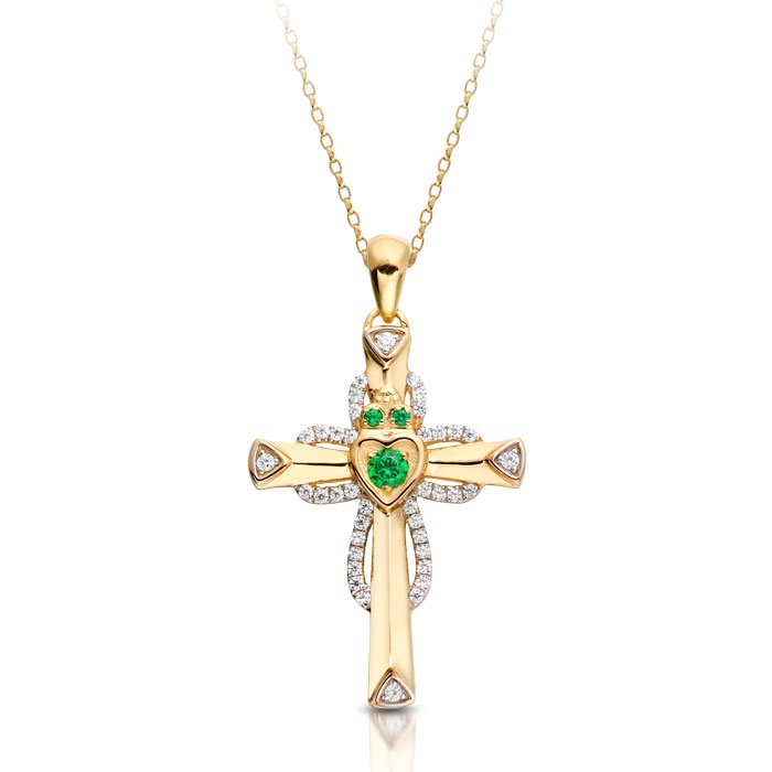 More importantly, Claddagh Cross in well known traditional Irish Claddagh Design makes a thoughtful gift that will warm her heart.! The spiritual significance of this Claddagh Cross design stands front and center with the striking Intricate Micro Pave CZÂ setting and synthetic Emerald.