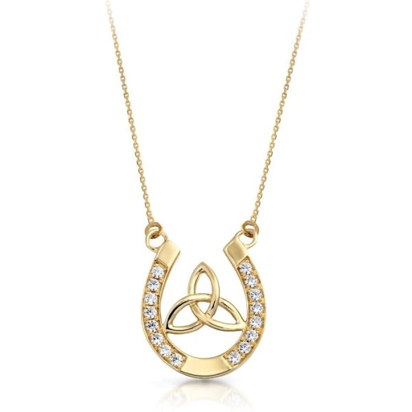 ✔ Free Shipping ✔ Tax free for outside the EU9ct Gold CZ Horse Shoe Celtic Pendant with Trinity Knot design. (Chain Included)