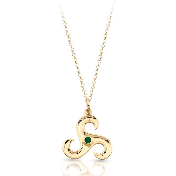 ✔ Free Shipping ✔ Tax free for outside the EU9K Gold CZ Emerald Triskele Celtic Pendant. (Chain not Included)