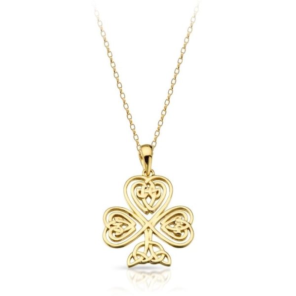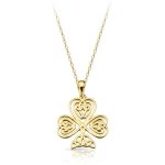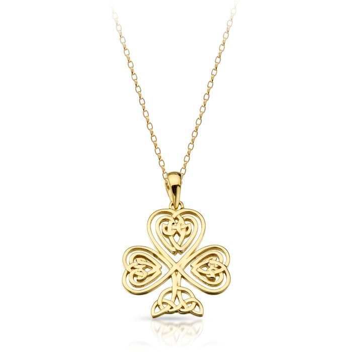 This iconic 9ct Gold shamrock Celtic Pendant forms a shape with Celtic Knotwork features both Shamrock and Celtic design. A unique take on this favorite irish Shamrock Celtic Pendant, it is said that both the giver and receiver of the Shamrock receive Good Luck.