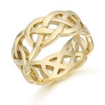 9ct Gold Celtic Wedding Ring. This tripartite symbol retains powerful meaning for Celtic history buffs and Christians alike. Crafted from lasting 9K Gold, this unisex Celtic design reveals the sleek and modern artistry of Irish Jeweller. This Celtic Ring is suitable as matching wedding band for both men and women; In this Celtic Wedding Band perpetual looping of the design suggests eternity. Also interconnectedness, making it the ideal pattern for your big day and perfect piece of Irish Jewelry. Also Popularity of the Ring and its customs wide spread within Ireland and Britain.