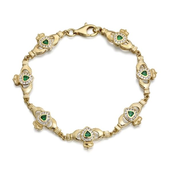 9ct Gold CZ Emerald Claddagh Bracelet – CLB38CL