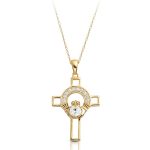 Divine symbol of faith this perfectly crafted in ireland by Claddagh Jeweler.  Irish Claddagh Cross features two hands clasping a heart surmounded by a crown. The elements of the Claddagh symbol are often said to correspond to qualities of love (the heart), friendship (the hands) and loyalty (the crown). Add your own chapter to this unique story with our beautiful Claddagh pendants.