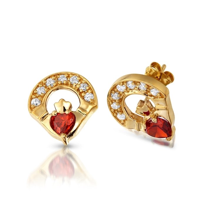 ✔ Free Shipping ✔ Tax free for outside the EU9ct Gold CZ Garnet Claddagh Earrings