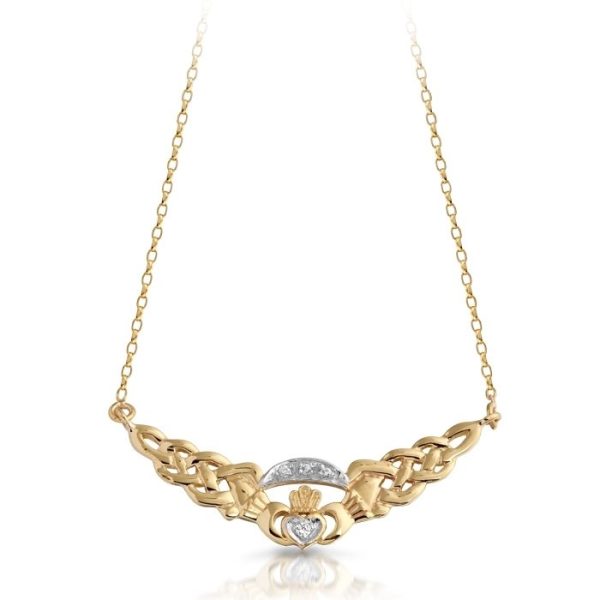 This 17″ Length Necklace style 9K Gold Cubic Zirconia claddagh Pendant, emphasizes the wonderful qualities found in good relationships with its symbols of love, friendship and loyalty so it will be a pleasure for the recipient to wear this beautiful claddagh Pendant.