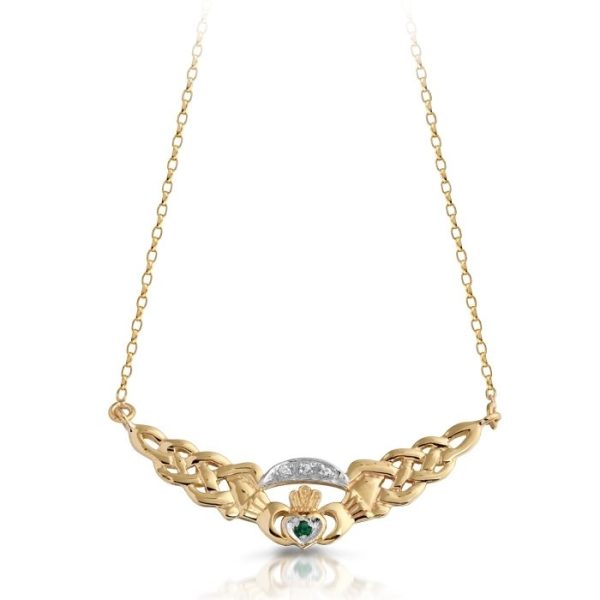 This 17″ Length Necklace style 9K Gold Cubic Zirconia claddagh Pendant, emphasizes the wonderful qualities found in good relationships with its symbols of love, friendship and loyalty so it will be a pleasure for the recipient to wear this beautiful claddagh Pendant.