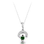 This 9ct White Gold Cubic Zirconia Claddagh Pendant also available in Earrings to match. Feel your Irish roots as you wear this sturdy Claddagh Pendant enriched with pave setting Cubic Zirconia and synthetic Emerald set in place of the heart. This chic and sparkly Claddagh Pendant make a lovely Irish gift for any Irish woman, so purchase your pair today!