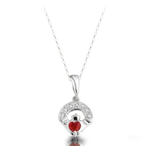 ✔ Free Shipping ✔ Tax free for outside the EU9K White Gold CZ Ruby Claddagh Pendant. (Chain not Included)