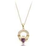 9K Gold CZ Amethyst Claddagh Pendant. (Chain not Included)
