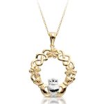 Claddagh Pendant with Shamrock and Knot Celtic Knot. This Claddagh Necklace is a wonderful combination of cultural symbols.  Also this sleek Claddagh Necklace design takes on the popular Irish trend and enhanced with modern twist for timeless style. Combined with Claddagh, Shamrock and Celtic pattern to reflect the Irish inspiration.