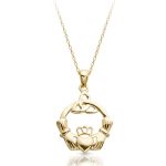 Moreover this sophisticated Pendant Symbolising eternal life and longevity is the perfect choice for anyone Irish. This Pendant features a distinctive design featuring two hands holding a heart and crown. Celebrate your Irish Heritage with this classic design that will always remind you of your most treasured moment. Elegant and sophisticated, this gorgeous 9ct gold pendant will lend every look a distinctly feminine edge.