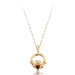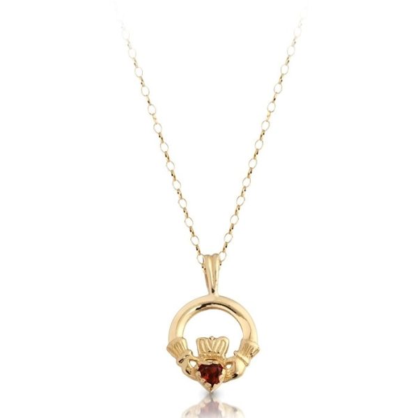 This Claddagh pendant is ideal for kids or young girls who apreciate fine things in life. Feel your Irish roots as you wear this Claddagh Pendant with Synthetic Garnet set in place of the heart. This chic and sparkly Pendant make a lovely Irish gift for any Irish kids or young girls, so purchase your pair today!