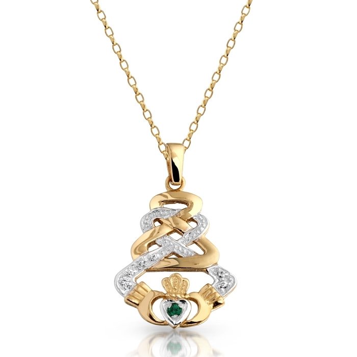 ✔ Free Shipping ✔ Tax free for outside the EU9ct Gold CZ Emerald Claddagh Pendant with Pave stone setting. (Chain not Included)