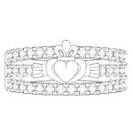 The traditional Claddagh design has been streamlined and simplified but we have added two bands studded with stones on each side which gives you the illusion of two separate bands on each side of this Claddagh which adds extra beauty & detail that draws eyes to attention to detail with opulent look and feel.