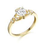 9K Gold CZ Claddagh Ring studded with Micro Pave stone setting. The traditional Claddagh design has been streamlined and simplified but meaning and sentiment remain the same. All our Irish Jewelry products are tested and hallmarked by Assay office in Dublin. An Irish beauty that radiates with history. Our 9ct Gold CZ Claddagh Ring features a heart-shaped CZ that’s classically crowned with a CZ stones and stones are also added on hand and cuff to further enhance the look. Wonderfully romantic as a gift or inexpensive promise ring. Claddagh Rings are now the last word in love due to it’s historic meaning.