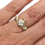 The Claddagh is Ireland’s everlasting commemoration of friendship, loyalty, and love.  This 9ct Gold ladies Irish Ring pays attention to details, style and craftsmanship to this timeless symbol. Also with its figurative representation which makes this Claddagh Ring stylish, unique and timeless piece of Irish Jewelry.