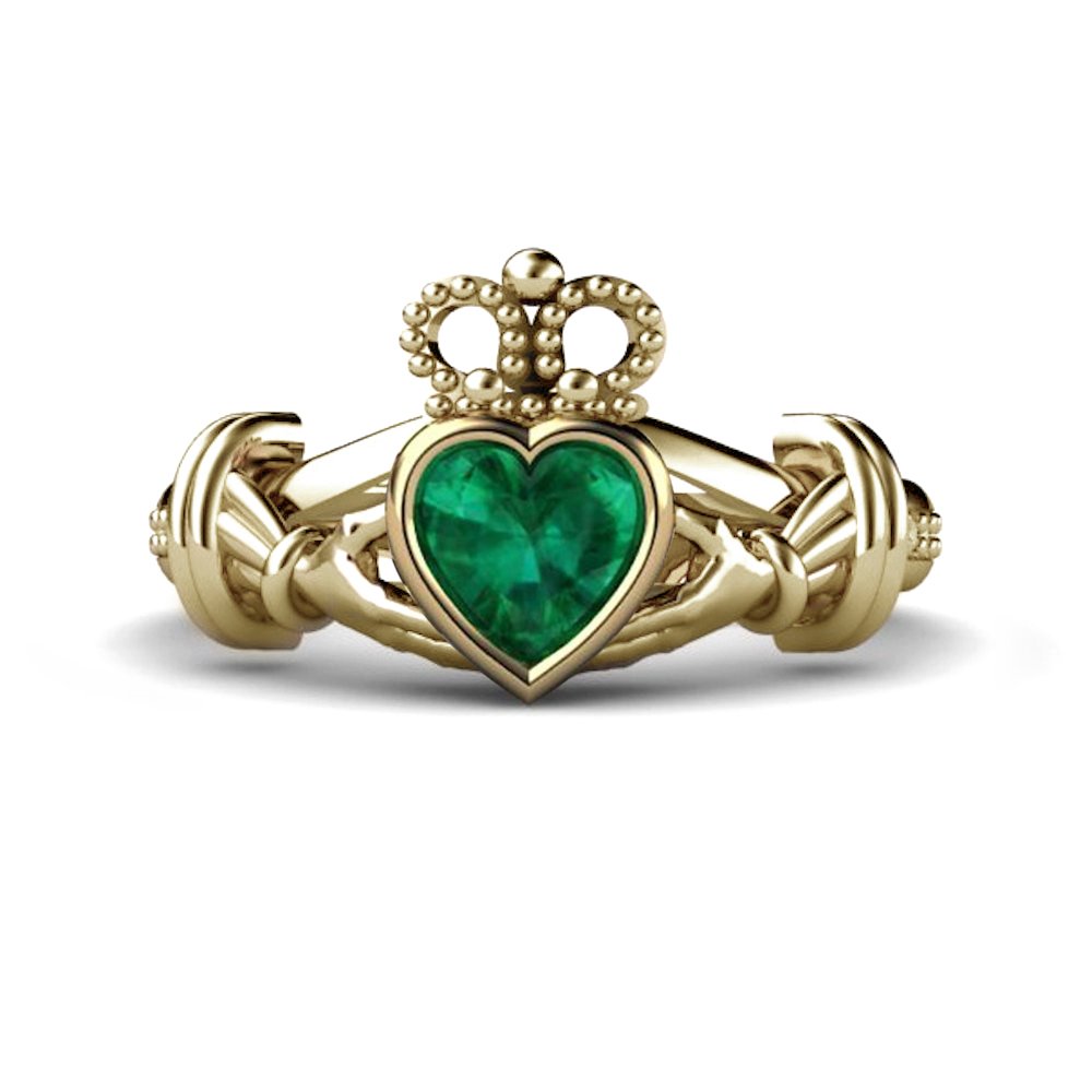 Claddagh Ring with CZ Emerald in Micro Pave stone setting.