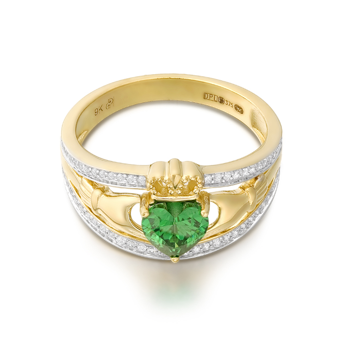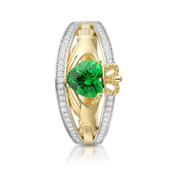 Claddagh Ring with CZ Emerald in Micro Pave stone setting.