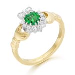 18K Gold Diamond and Emerald Claddagh Ring.  Give your fine jewellery collection a splash of colour with this stunning Emerald and Diamond Ring.