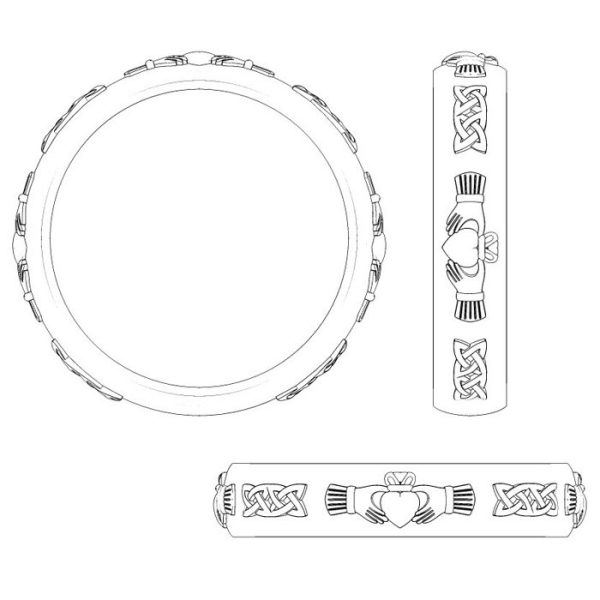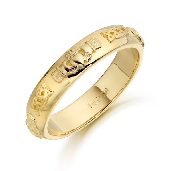 9K Gold Claddagh Wedding Band with Celtic Knot.