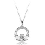 Three features of this Claddagh Pendant makes a piece of Irish Jewellery that represent Ireland and Irish heritage of Love, Friendship and Loyalty. The design and customs associated with it originate from the 17th century, in the Irish fishing village of Claddagh which lies just outside the old city walls of Galway. Irish Jeweller has taken the symbolism of the traditional Claddagh and given it a contemporary look to this Silver stunning Claddagh Pendant which further enhanced and decorated with Celtic pattern and Cubic Zirconia to make a unique and gracious Irish Jewelry.This Claddagh Pendant is made of Silver and sturdy in design which makes it ideal piece of Irish Jewellery and design that shows Irish heritage and makes a perfect part part of Celtic Jewelry collection.