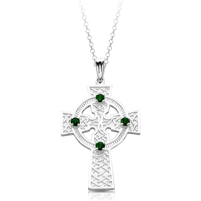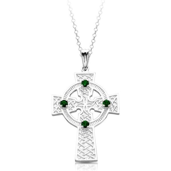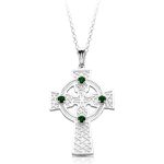 This simple design Celtic Cross crafted by Irish Jeweller in Ireland is set with Synthetic Emerald which adds a the beauty to this classic Celtic Cross Pendant.