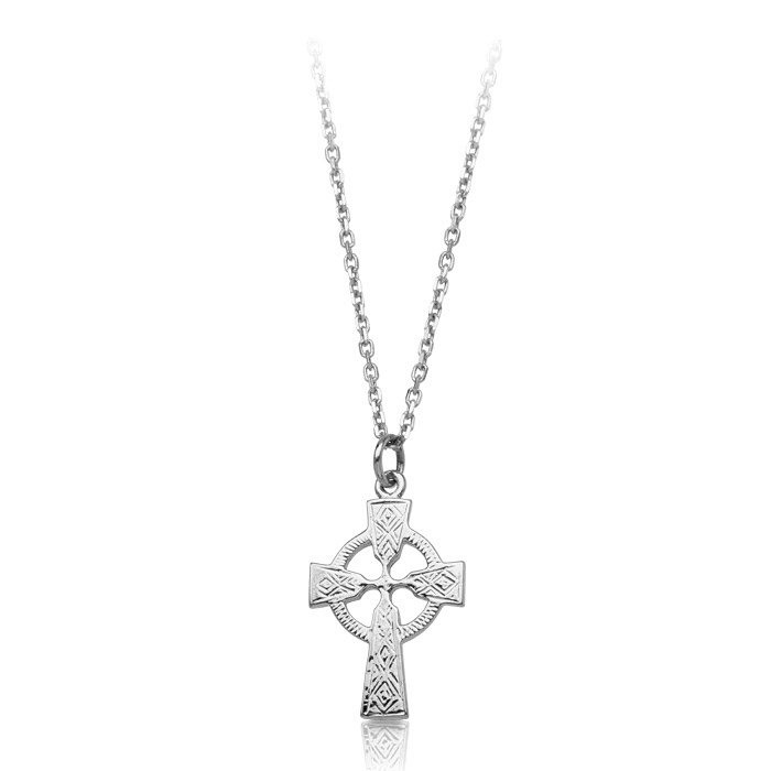 The Celtic crossĀ Pendant is designed to be an elegant expression of faith.Ā This solidĀ SilverĀ Celtic Cross Pendant has been engraved with traditional Celtic knot workĀ And yes, this Celtic crossĀ Pendant is a piece of authentic Irish jewelry made in Ireland. Ā Therefore, we believe the Celtic cross necklace belongs in a special in your heart and jewelry collection and not simply because it accessorizes all outfits from casual to dressy.