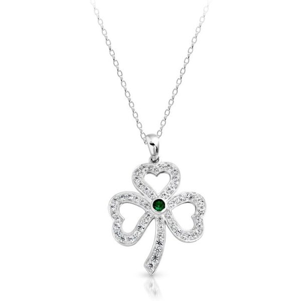 Made In Ireland with 925 Sterling Silver, the Lucky Shamrock Pendant set with Cubic Zirconia micro pave stone setting covering the surface to add detail and sparkle. The Lucky Shamrock Pendant measures 30H x 20W mm and this culturally enriched piece of Irish jewelry was crafted by Irish Jeweller. Both chic and fun, the Silver Lucky Shamrock Pendant can be worn anywhere you go!