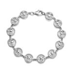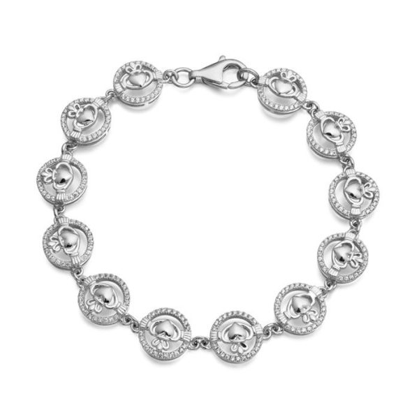 In this Claddagh Braceletet Irish jeweler interpretated the concept Claddagh faithfully and decorated it with Micro-Pave stone setting to further enhance this Bracelet. Respecting tradition and being audacious must always go hand in hand and this Claddagh Bracelet eveidently and elegantly demonstrated.Â