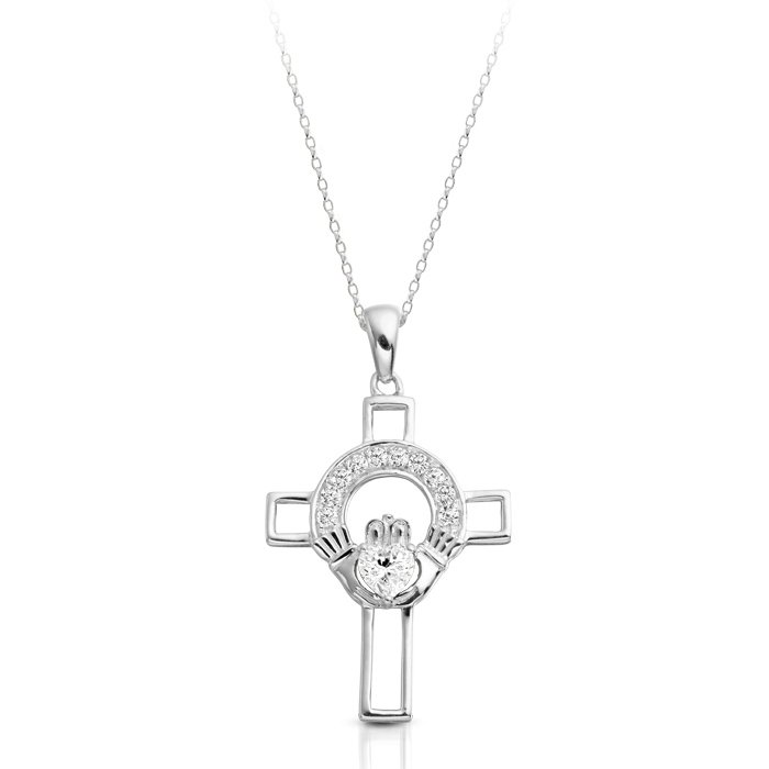 â Free Shipping â Tax free for outside the EUSilver CZ Claddagh Cross. (Chain Included)