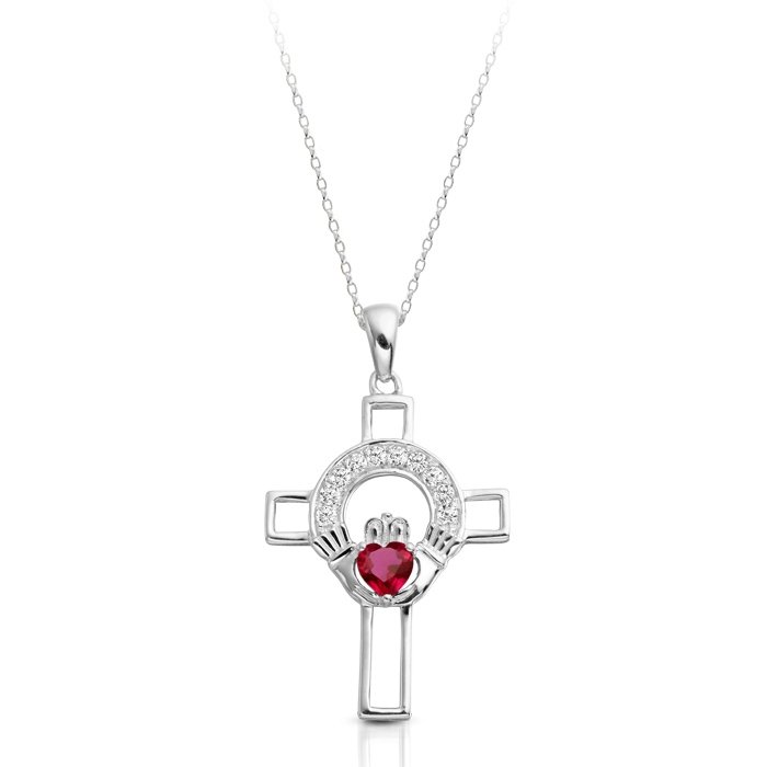 â Free Shipping â Tax free for outside the EUSilver CZ Ruby Claddagh Cross. (Chain Included)