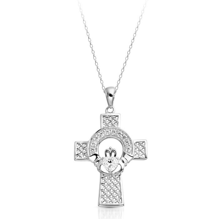 ✔ Free Shipping ✔ Tax free for outside the EUSilver CZ Claddagh Cross. (Chain Included)