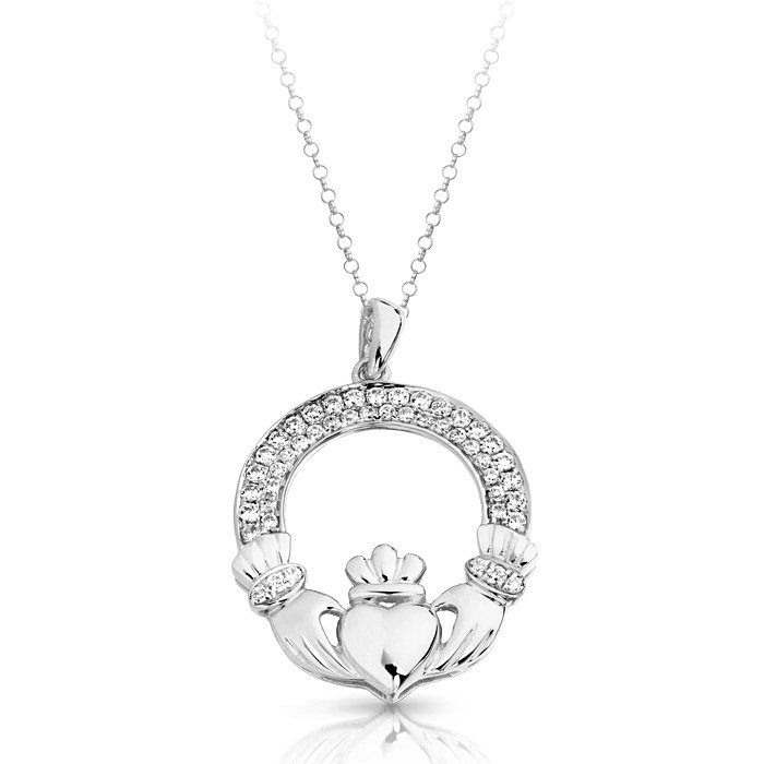 A beautiful Irish Cubic Zirconia Claddagh pendant for a beautiful Irish woman, what better way to show her how much you care than to give her a claddagh Pendant, symbolizing your love, loyalty and friendship?
