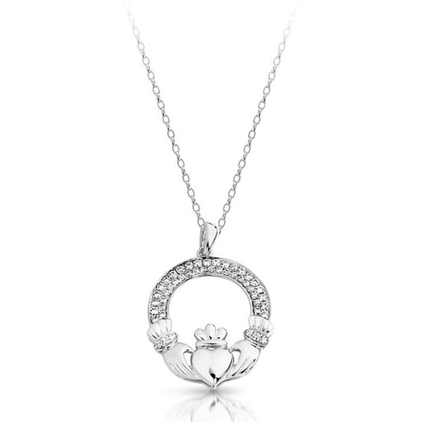 A beautiful Irish Cubic Zirconia Claddagh pendant for a beautiful Irish woman, what better way to show her how much you care than to give her a claddagh Pendant, symbolizing your love, loyalty and friendship?