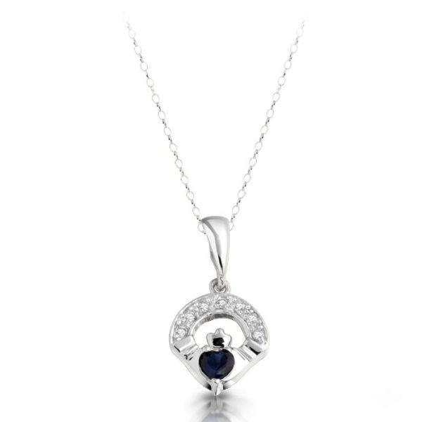 ✔ Free Shipping ✔ Tax free for outside the EUSilver CZ Sapphire Claddagh Pendant. (Chain Included)