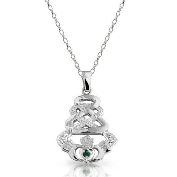 ✔ Free Shipping ✔ Tax free for outside the EUSilver CZ Emerald Claddagh Pendant with Pave stone setting. (Chain Included)