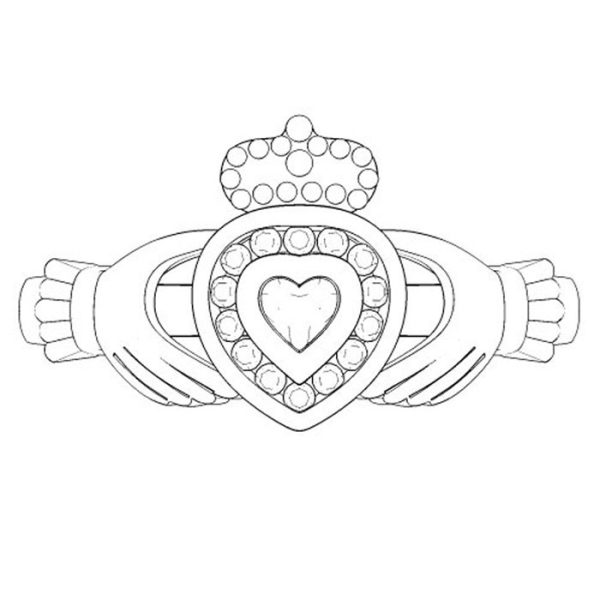 This Claddagh ring looks truly Irish with synthetic Emerald stone set as Heart surrounded with precision set  Cubic Zirconia stones to decorate the concept to bring out the beauty & sparkle in Claddagh Ring. One can’t help but adore the beautiful Irish craftsmanship., this Ladies Cubic Zirconia Claddagh Ring is crafted from 925 Sterling Silver by Claddagh Jeweler in Ireland.