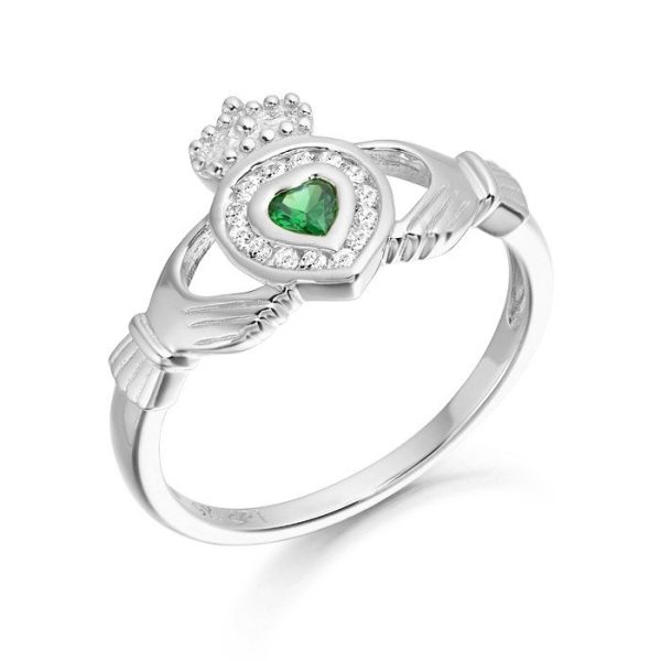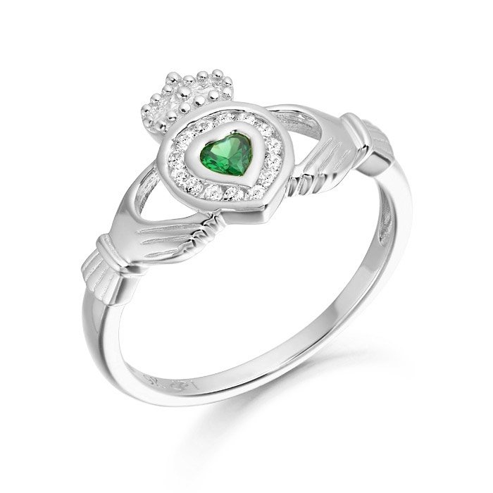 âś” Free Shipping âś” Tax free for outside the EUSILVERÂ CZ SYNTHETICÂ EMERALD CLADDAGH RING